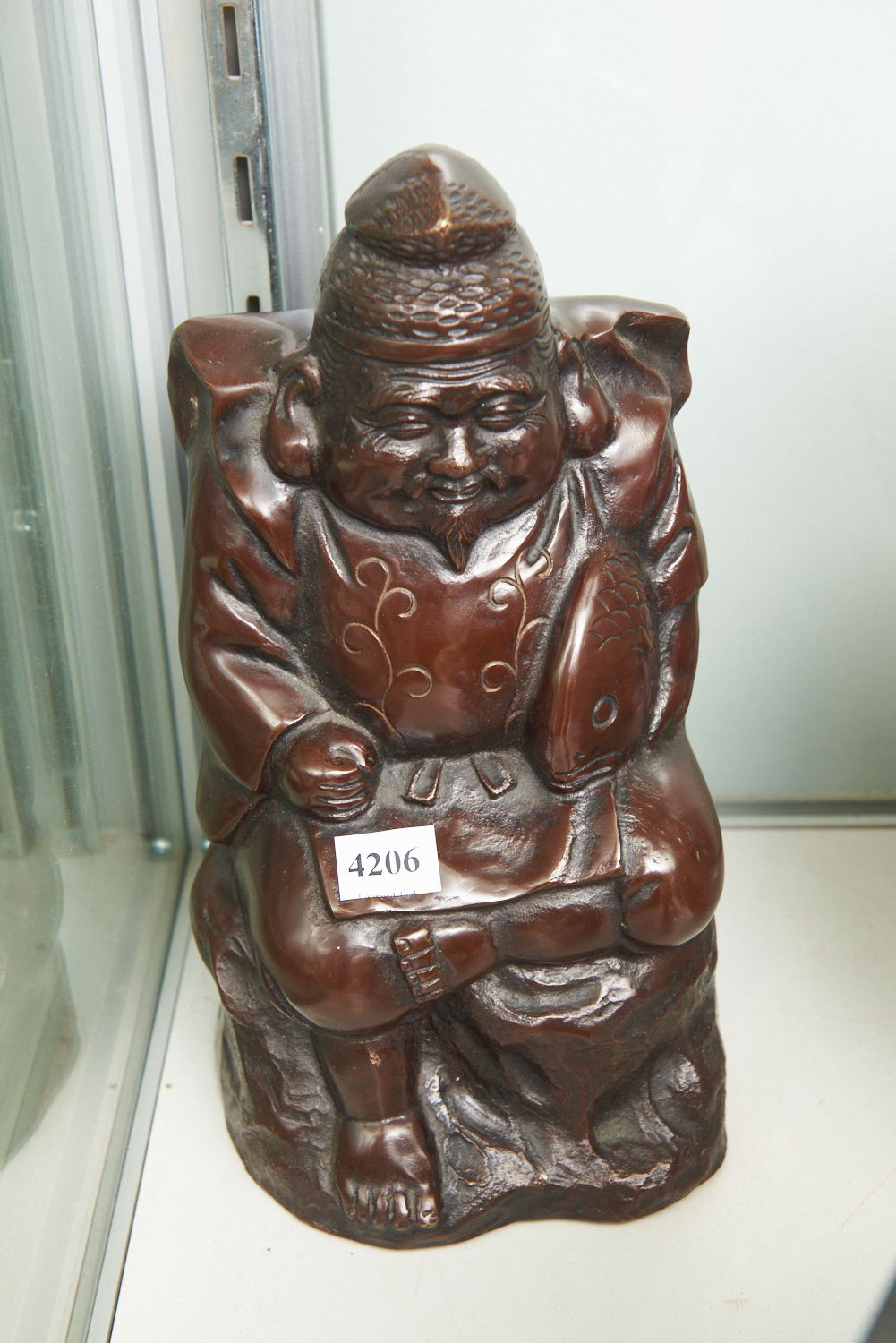 A BRONZE FIGURE OF A GENTLEMAN WITH FISH (26 CM H), LEONARD JOEL LOCAL DELIVERY SIZE: SMALL