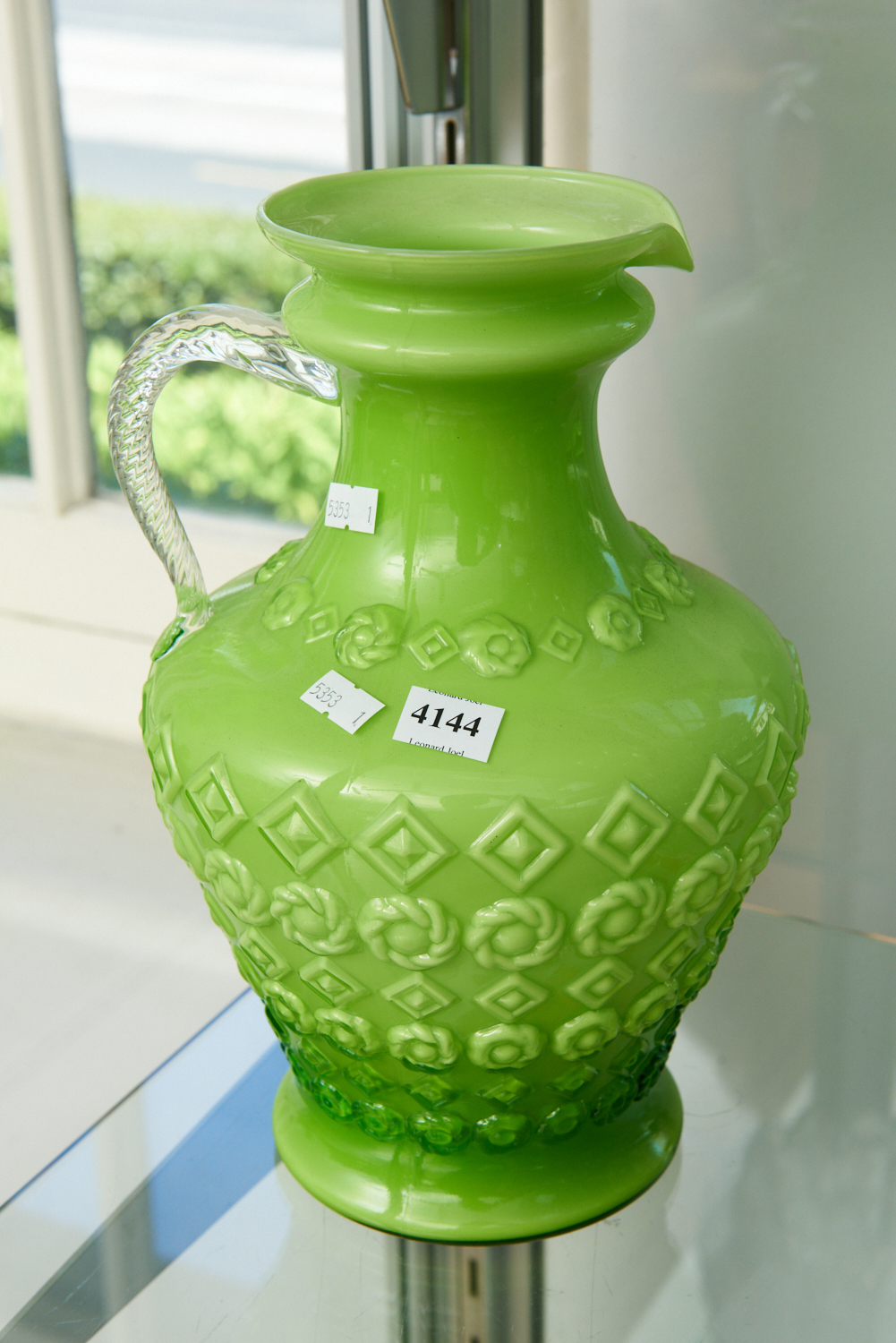A 1950S ITALIAN GREEN GLASS JUG (30 CM H), LEONARD JOEL LOCAL DELIVERY SIZE: SMALL