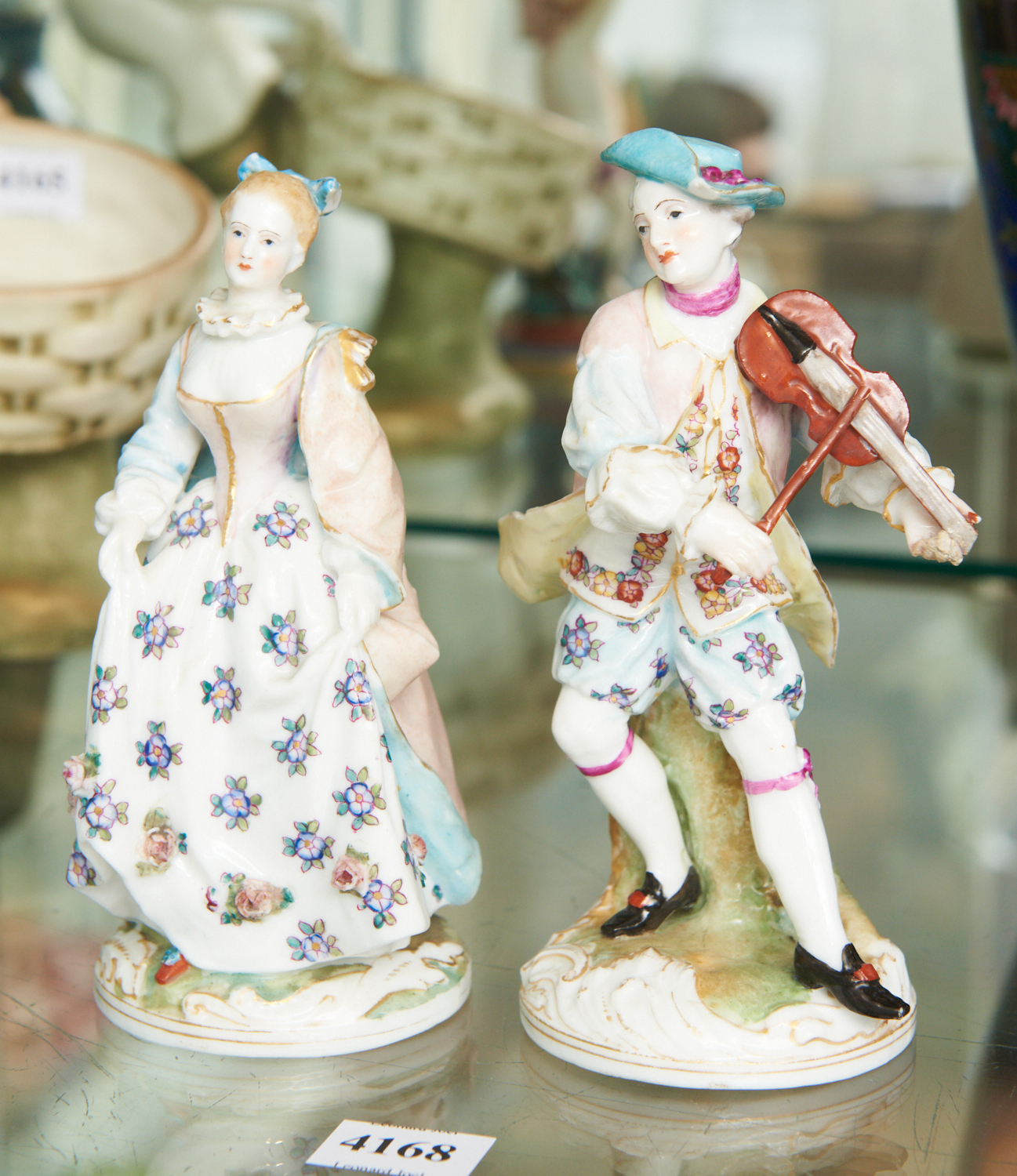 A PAIR OF MEISSEN PORCELAIN FIGURINES (15.5 CM H), LEONARD JOEL LOCAL DELIVERY SIZE: SMALL