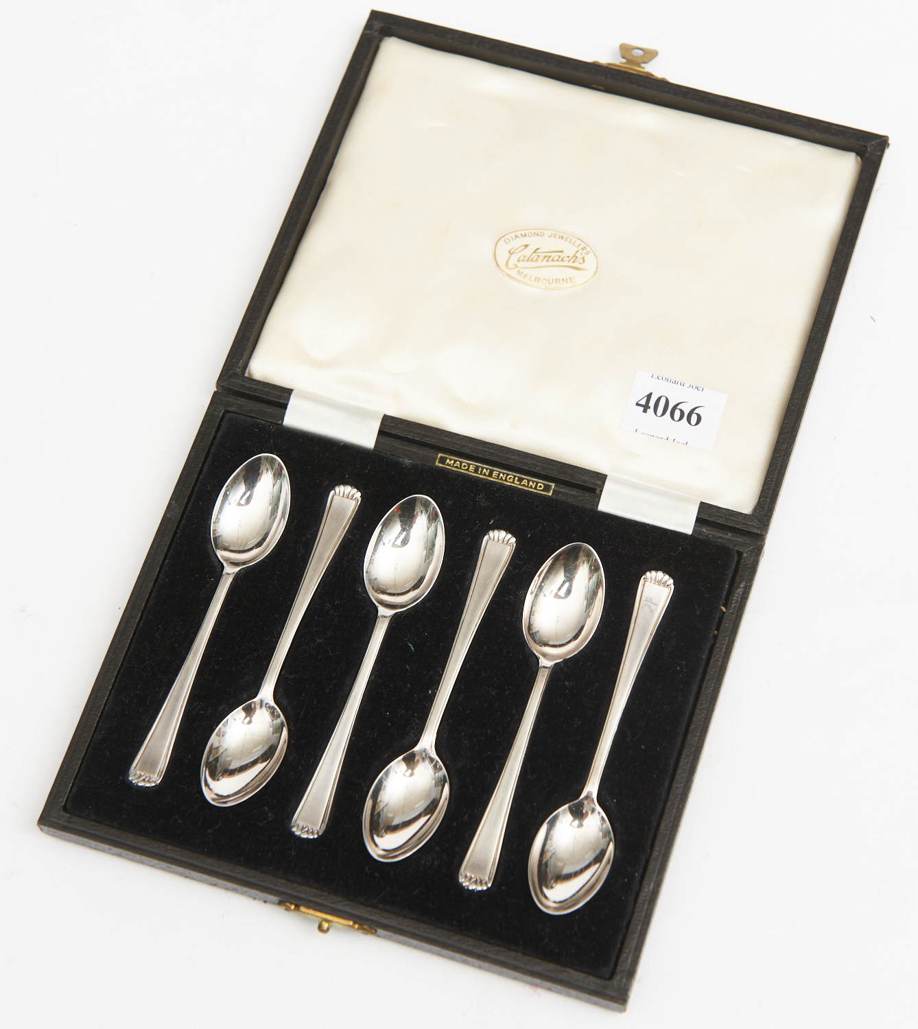 SIX SILVER COFFEE SPOONS IN CASE, LEONARD JOEL LOCAL DELIVERY SIZE: SMALL