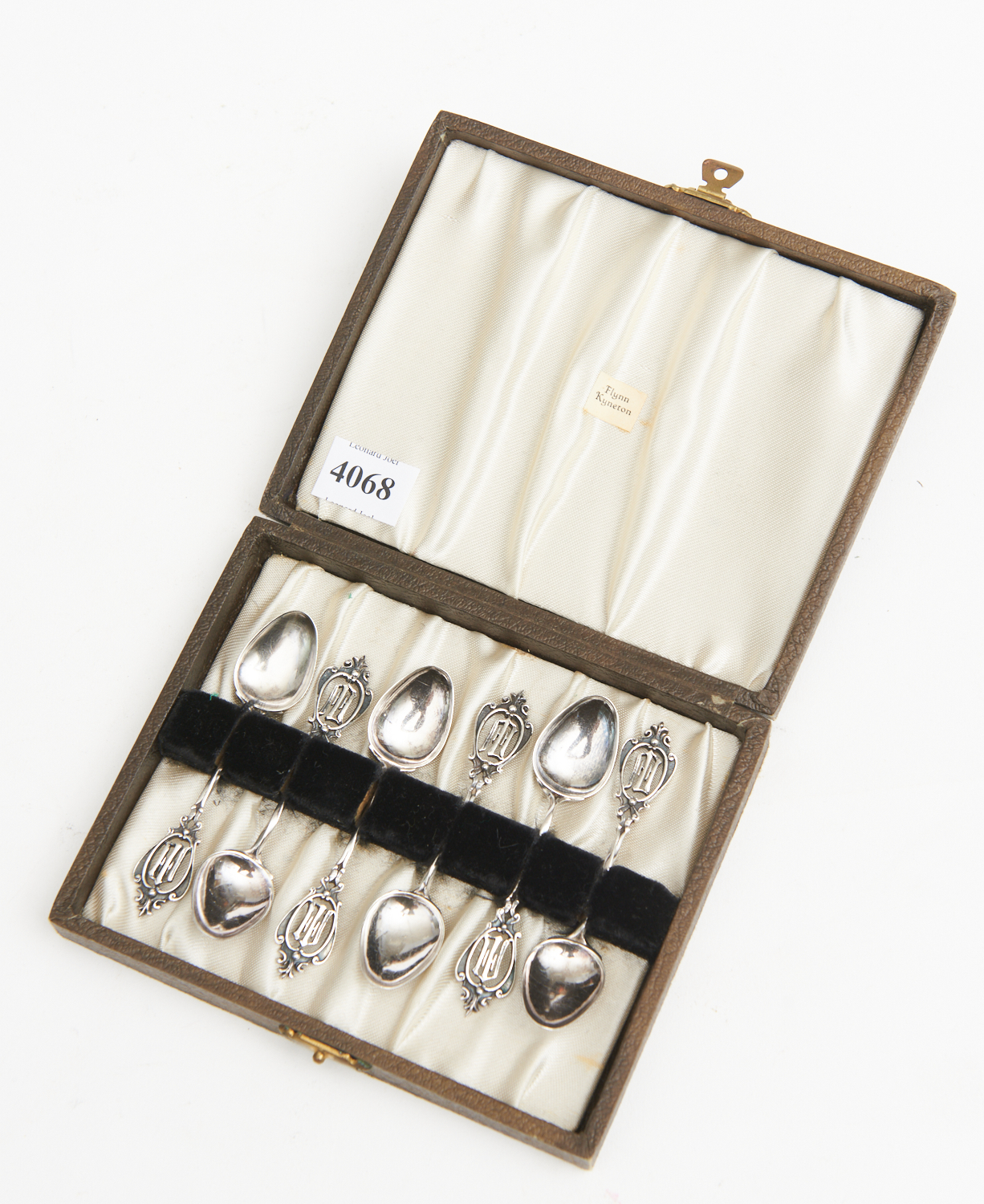 A FLYNN KYNETON SET OF SIX SPOONS IN CASE, LEONARD JOEL LOCAL DELIVERY SIZE: SMALL