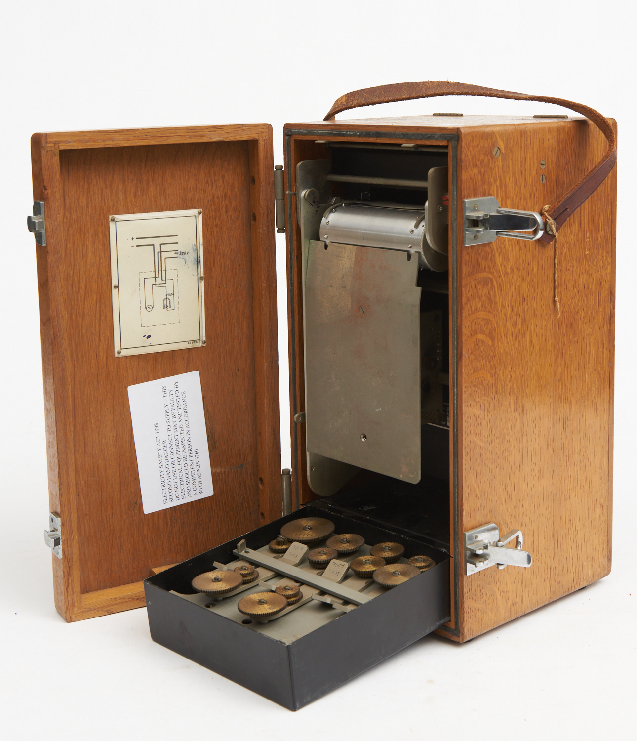 A VINTAGE MACHINE IN WOODEN BOX, LEONARD JOEL LOCAL DELIVERY SIZE: SMALL