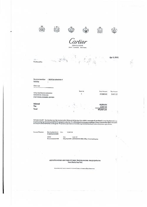 a Cartier facsimile receipt and box.