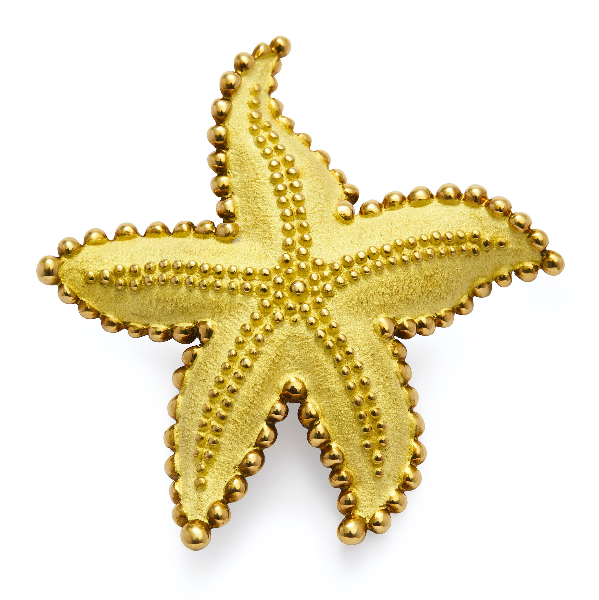 Modelled as a stylised starfish, the textured gold body decorated at intervals with gold boules, approximately 63mm x 62mm, signed Elsa Peretti, Tiffany & Co.