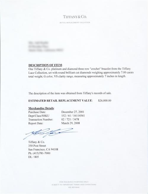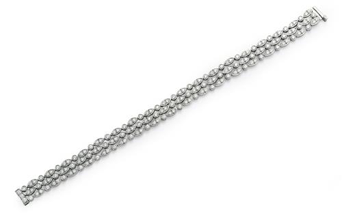 Comprising of three articulated lines of lozenge-shaped links, decorated with brilliant-cut diamonds alternating between collet-set diamonds, completed by a box clasp, the diamonds together weighing approximately 7.00 carats, width approximately 9mm, length approximately 180mm, signed Tiffany & Co.