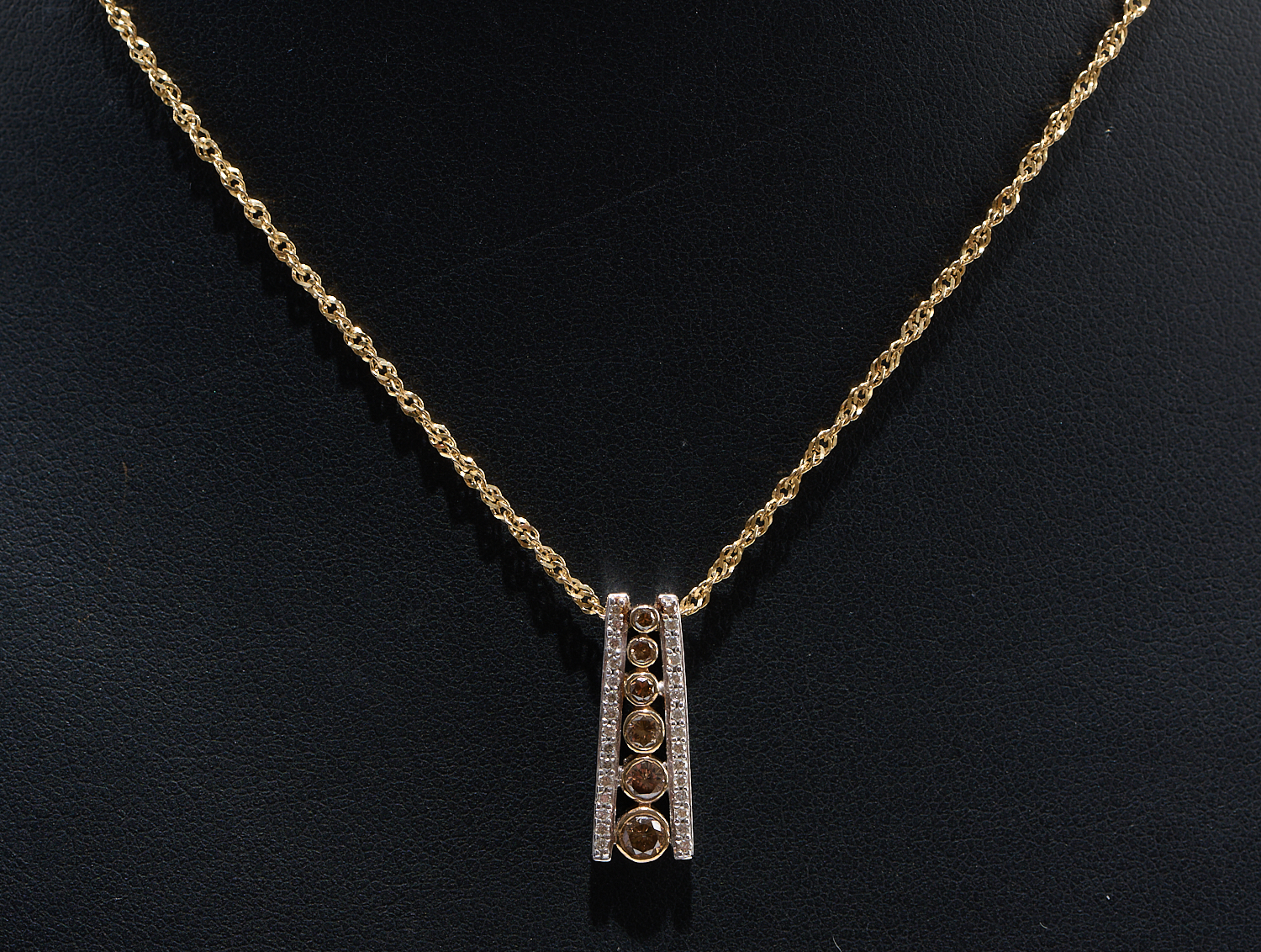 A GRADUATED DIAMOND PENDANT IN 9CT WHITE GOLD TO AN ITALIAN GOLD CHAIN IN 9CT