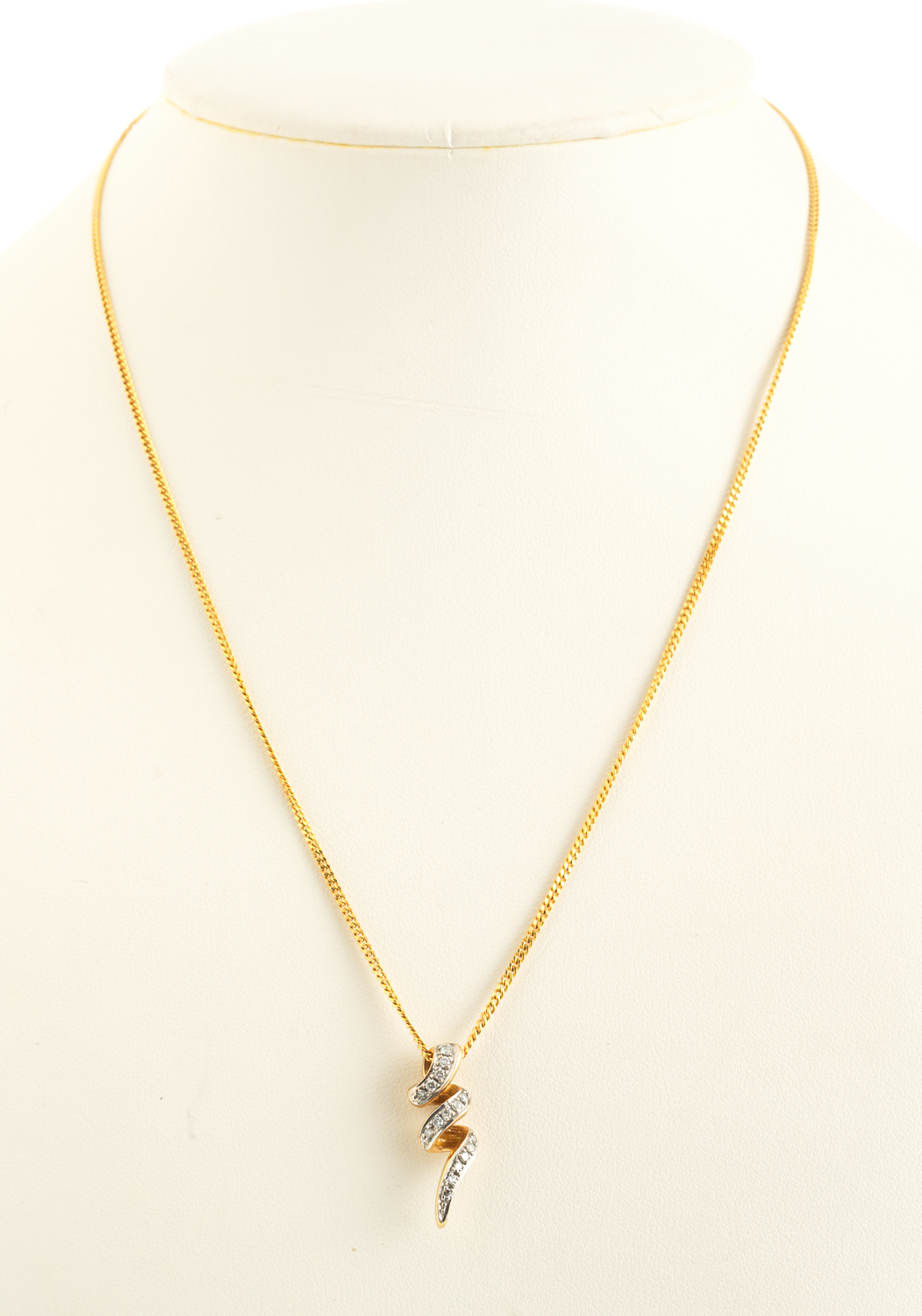 A DIAMOND PENDANT IN 9CT GOLD, TO A CONFORMING FINE TRACE CHAIN, TOTAL LENGTH 460MM, 5.7GMS