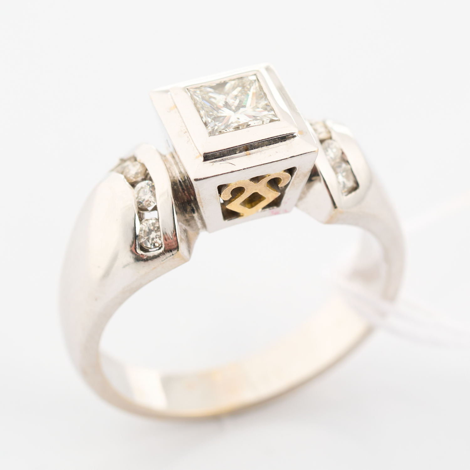 AN ART DECO STYLE DIAMOND DRESS RING IN TWO TONED 18CT GOLD, RING SIZE L, 7.3GMS