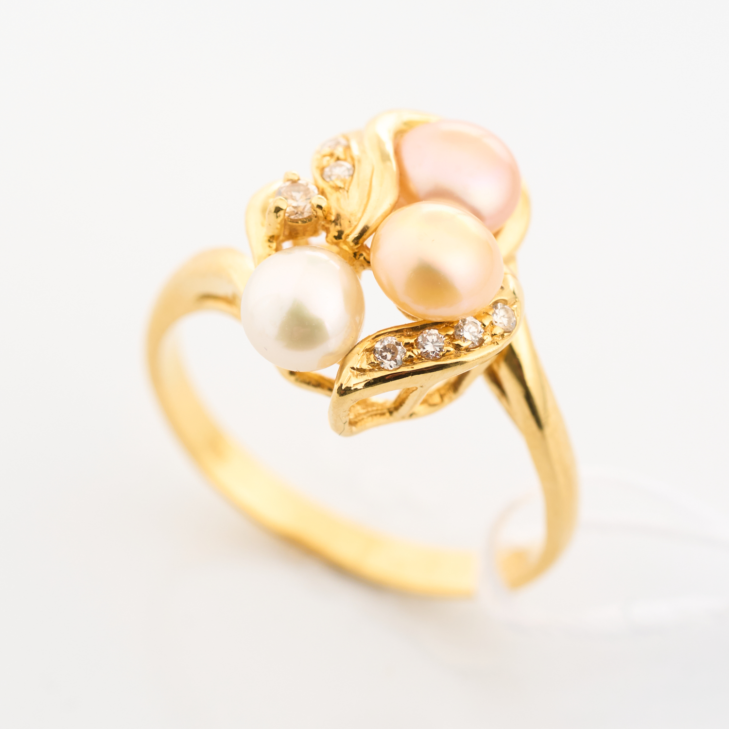 A CULTURED PEARL AND DIAMOND DRESS RING IN 18CT GOLD, SIGNED A&C, SIZE K, 3.4GMS
