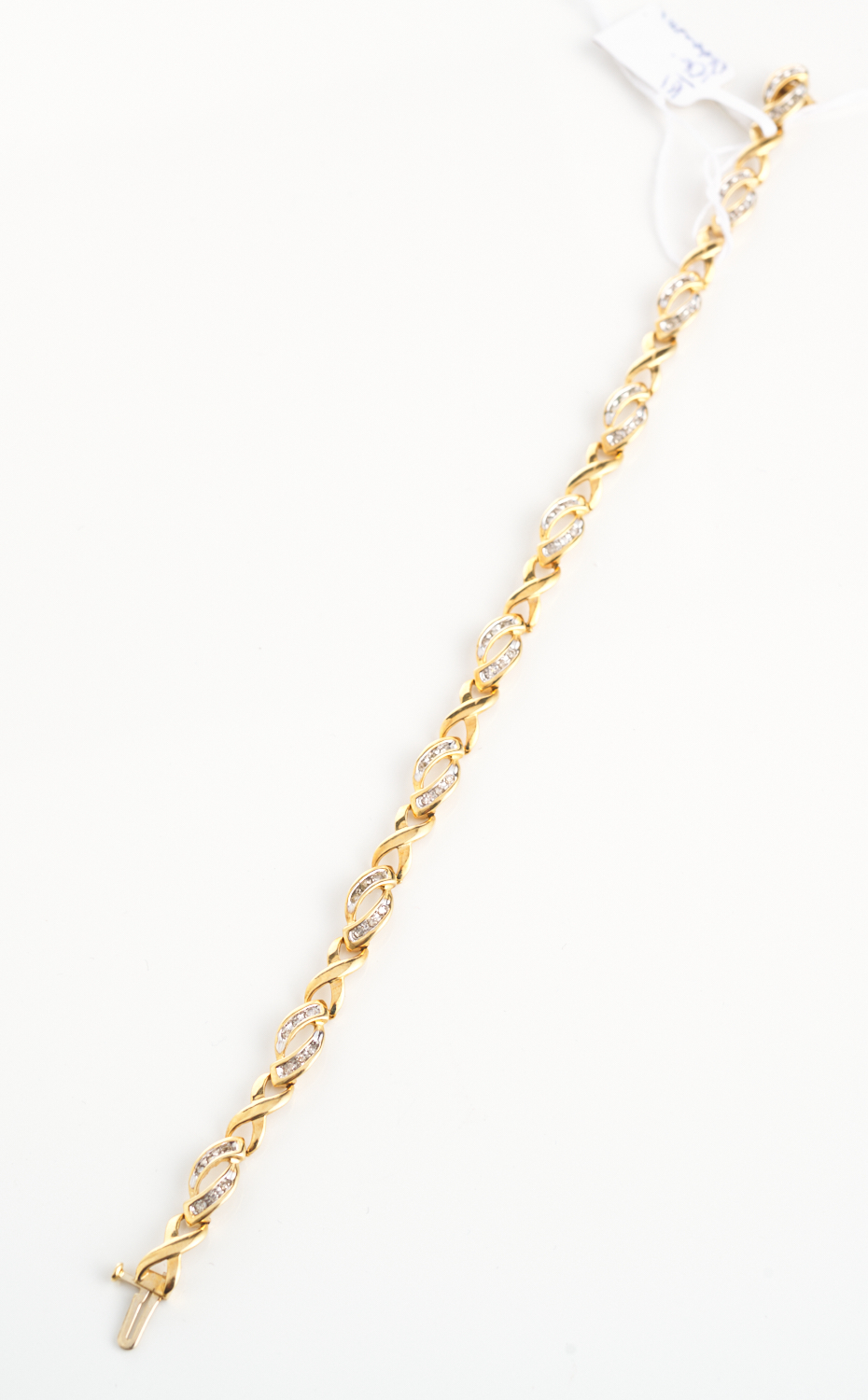 AN INFINITY CHAIN LINK DIAMOND BRACELET I N 10ct GOLD, TOTAL LENGTH 190MM, 7.1GMS