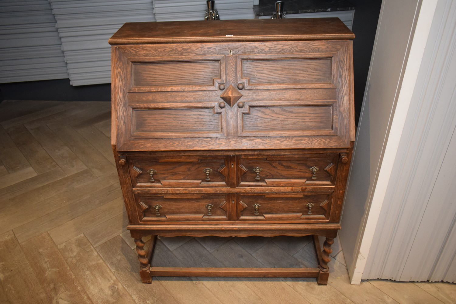 20TH CENTURY DROP FRONT BUREAU (15H x 90W x 50D CM) (LEONARD JOEL DELIVERY SIZE: LARGE)