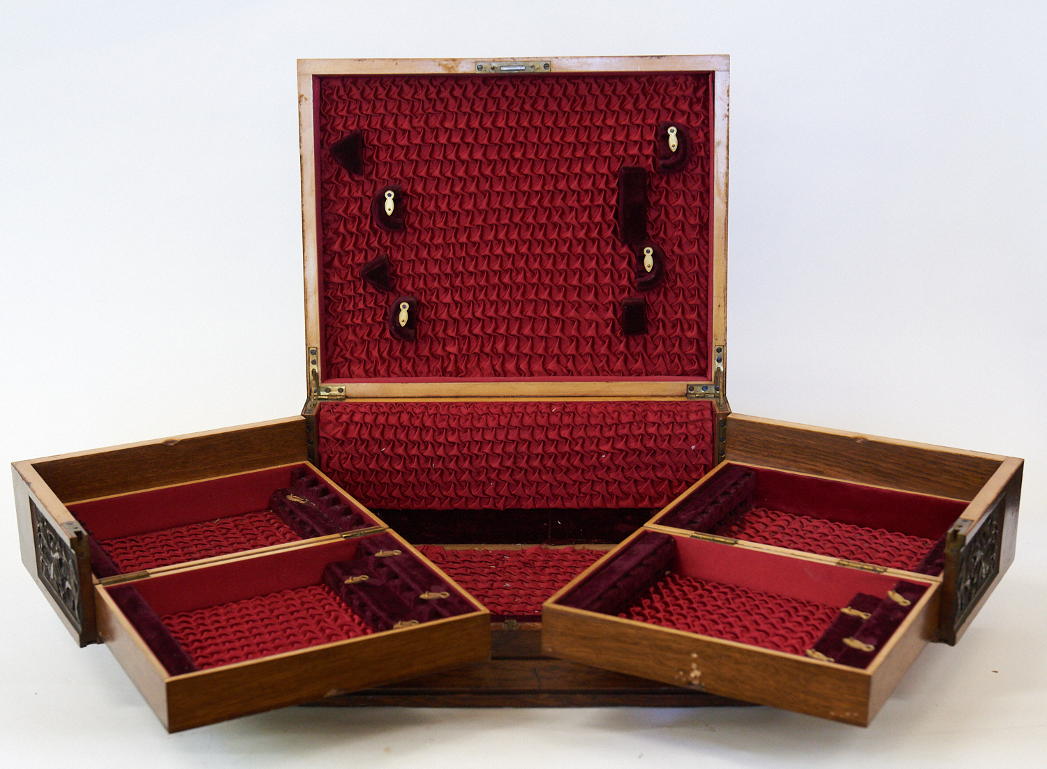 A VICTORIAN CHIP CARVED CUTLERY CANTEEN WITH FITTED INTERIOR (40 CM W), LEONARD JOEL LOCAL DELIVERY SIZE: SMALL