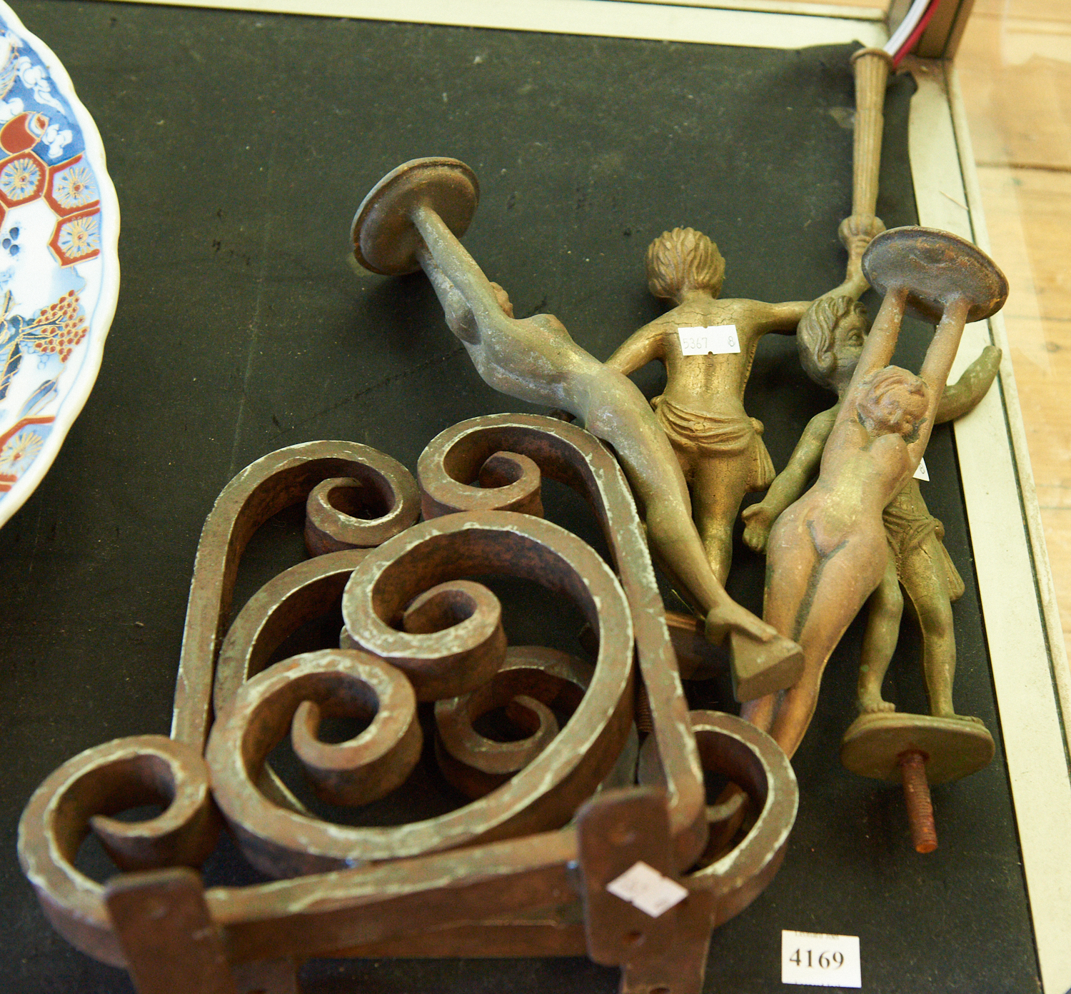 A GROUP OF BRASS FIGURINES AND TOGETHER WITH METAL DECORATIONS (A/F), LEONARD JOEL LOCAL DELIVERY SIZE: SMALL
