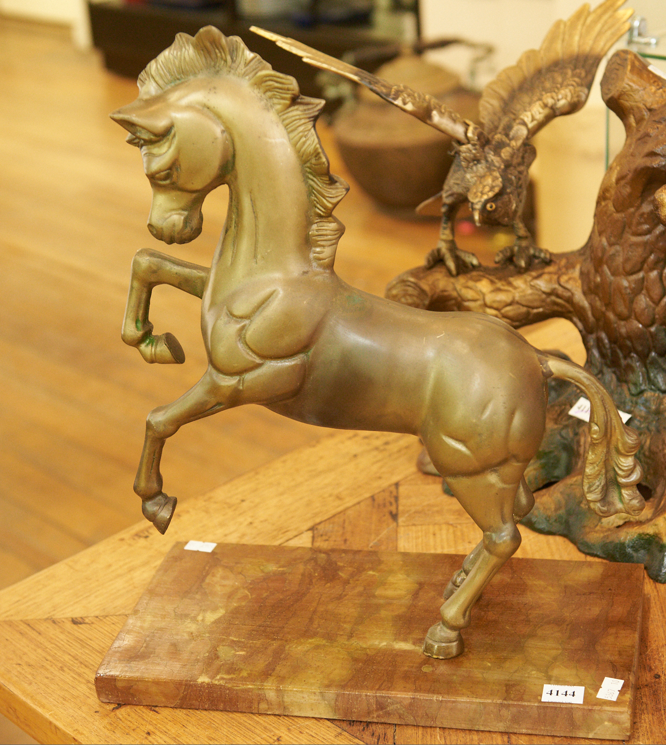 A BRASS SCULPTURE OF A HORSE ON STONE BASE (44 CM H), LEONARD JOEL LOCAL DELIVERY SIZE: SMALL