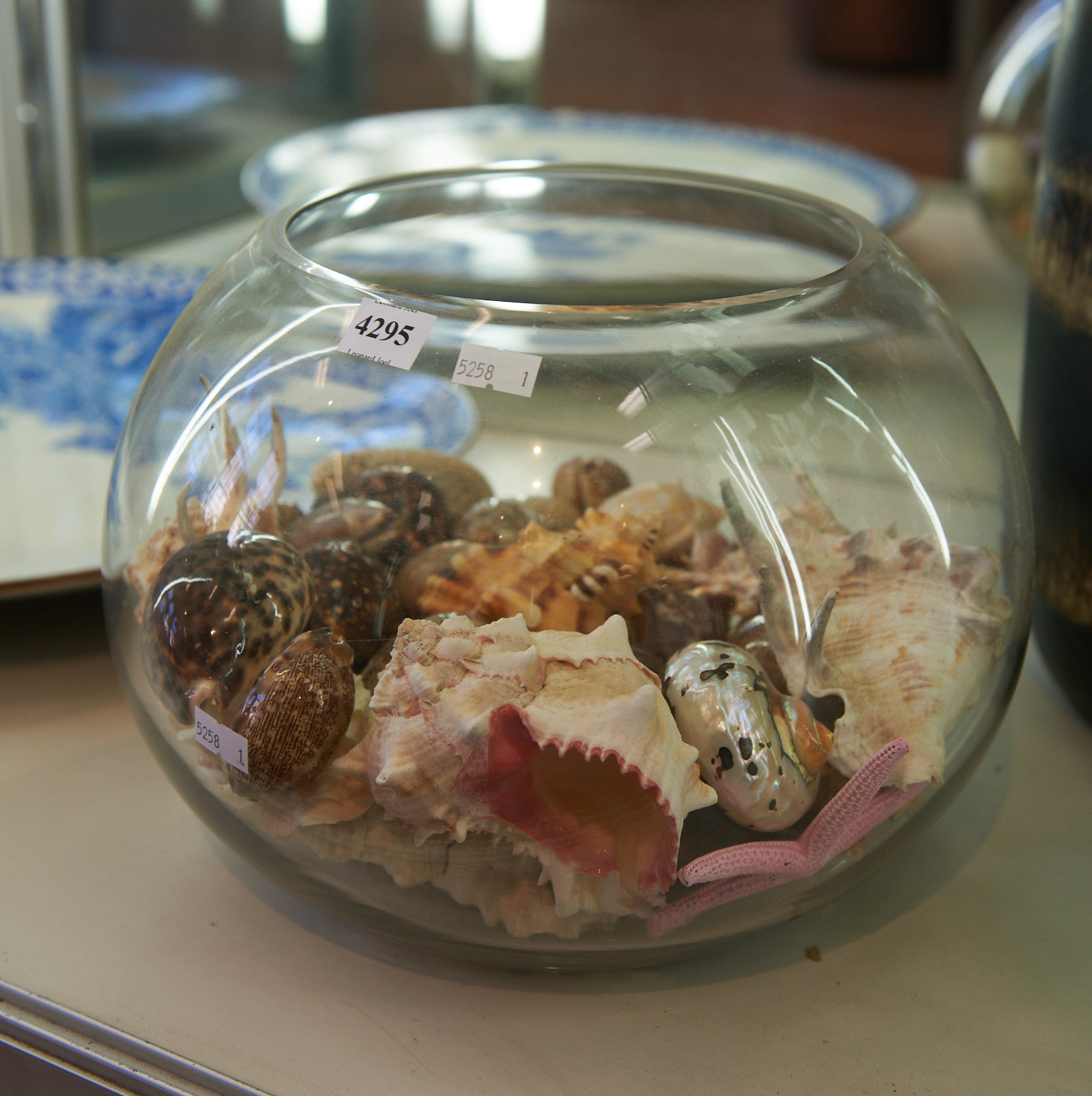 A LARGE COLLECTION OF SHELLS IN GLASS BOWL, LEONARD JOEL LOCAL DELIVERY SIZE: SMALL