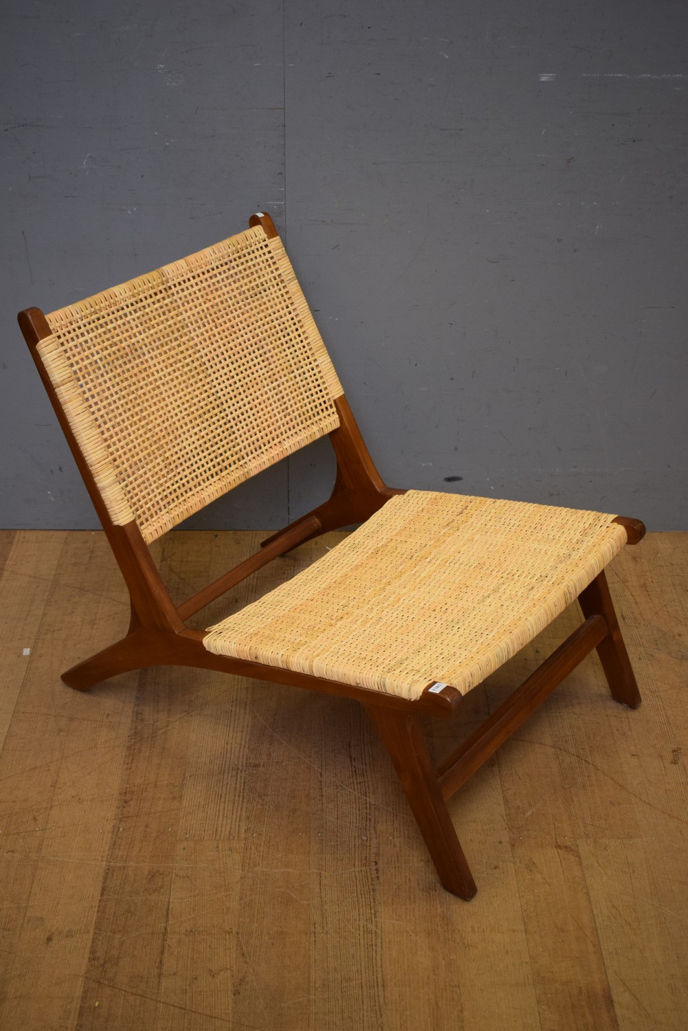 A TEAK AND RATTAN ACCENT CHAIR (71H x 60W x 84D CM() (LEONARD JOEL DELIVERY SIZE: MEDIUM)