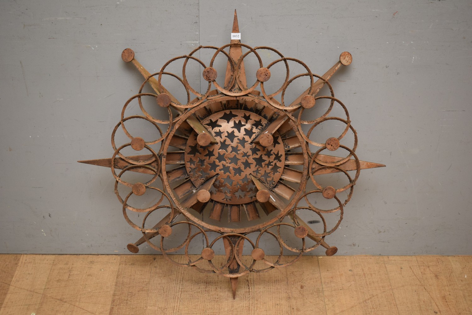 AN ORNATE METAL GARDEN WALL SCULPTURE (A/F) (88D CM) (LEONARD JOEL DELIVERY SIZE: LARGE)