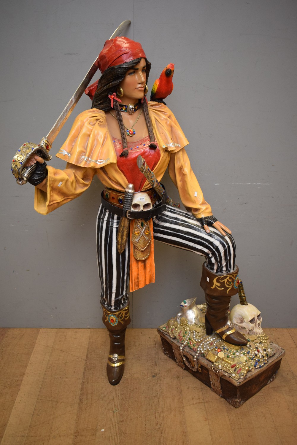A LIFE SIZE COMPOSITE PIRATE LADY STATUE (182H x 142W x 80D CM) (PLEASE NOTE THIS HEAVY ITEM MUST BE REMOVED BY CARRIERS AT THE CUSTOMER'S EXPENSE. LEONARD JOEL STAFF CANNOT ASSIST CARRYING THIS ITEM) (X-LARGE ITEM)