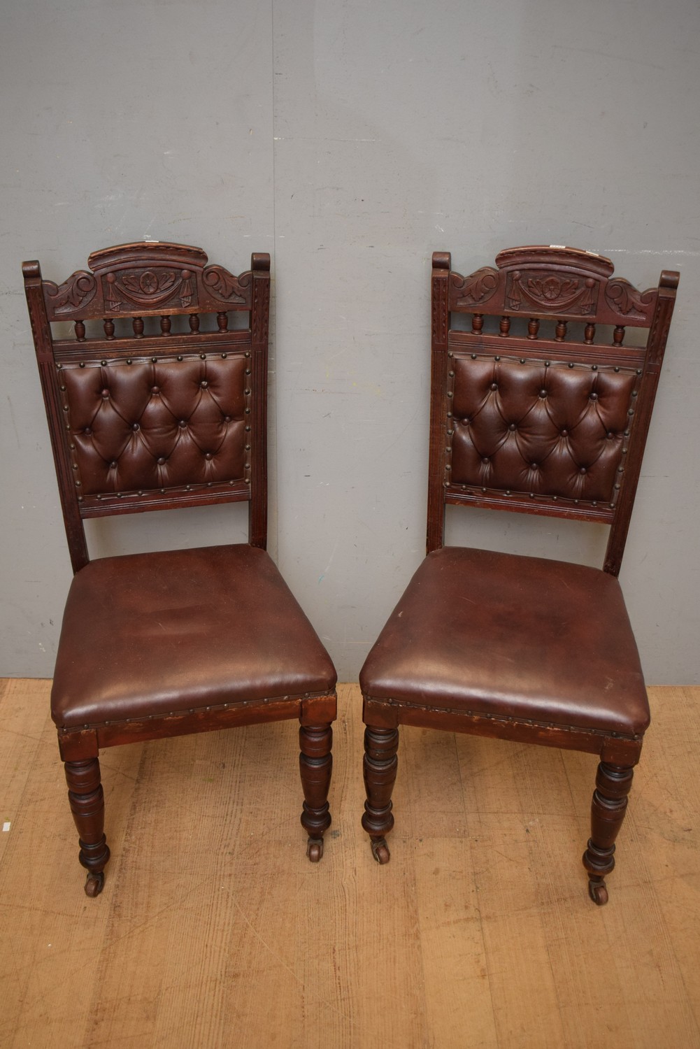 A PAIR OF EDWARDIAN DINING CHAIRS (102H x 47W x 44D CM) (LEONARD JOEL DELIVERY SIZE: LARGE)