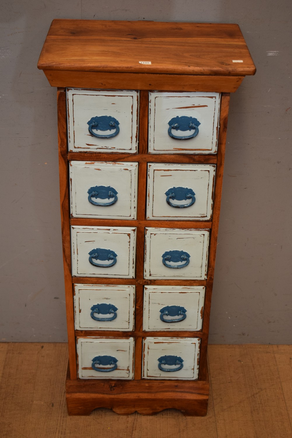 A RUSTIC TEN DRAWER CHEST (106H x 46W x 31D CM) (LEONARD JOEL DELIVERY SIZE: LARGE)