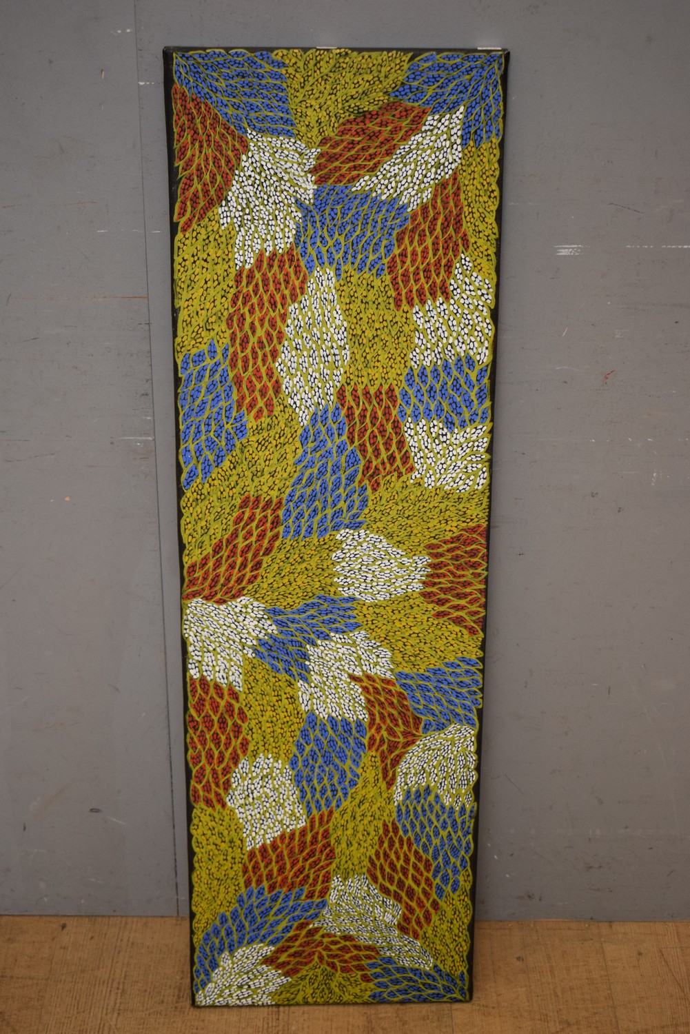 AN ABORIGINAL ARTWORK (122H x 37W CM) (LEONARD JOEL DELIVERY SIZE: MEDIUM)