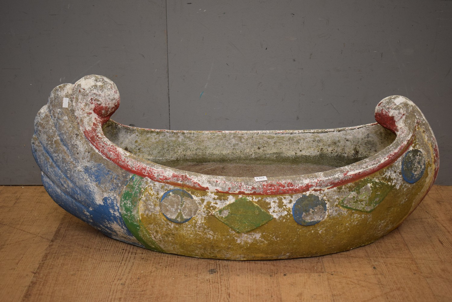 A RETRO CONCRETE CANOE PLANTER WITH ORIGINAL PAINT (40H x 95W x 37D CM) (PLEASE NOTE THIS HEAVY ITEM MUST BE REMOVED BY CARRIERS AT THE CUSTOMER'S EXPENSE. LEONARD JOEL STAFF CANNOT ASSIST CARRYING THIS ITEM) (X-LARGE ITEM)