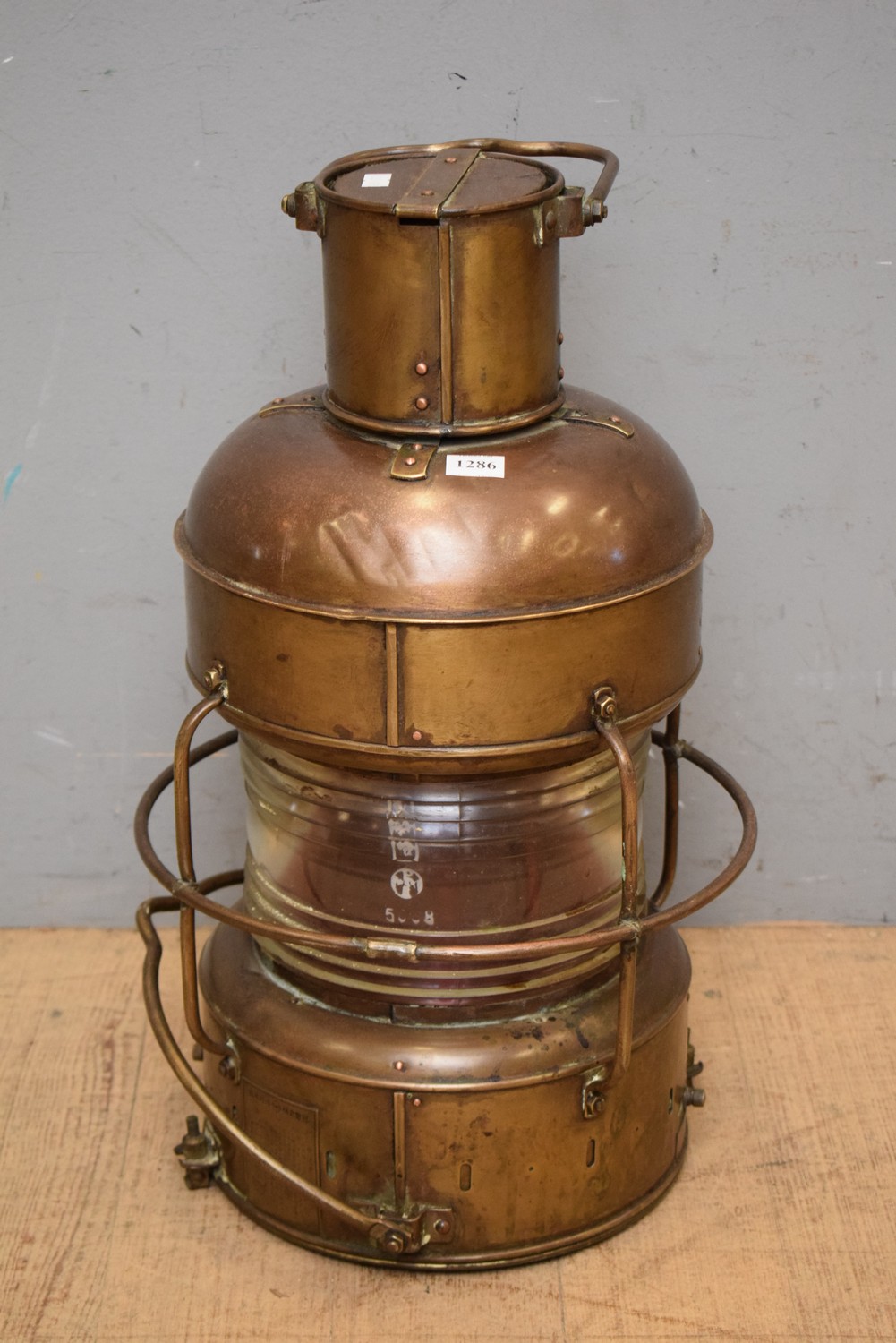 A SOLID BRASS AND COPPER NIPPON SENTO LARGE HANDING SHIPS LANTERN (50H x 31D CM) (LEONARD JOEL DELIVERY SIZE: MEDIUM)