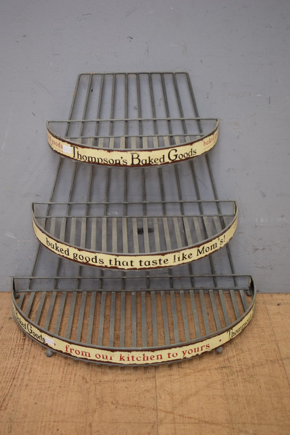 METAL AND ENAMEL THOMPSONS BAKED GOODS 3 TIER SHOP DISPLAY STAND (44H x 45W x 27D CM) (LEONARD JOEL DELIVERY SIZE: SMALL)