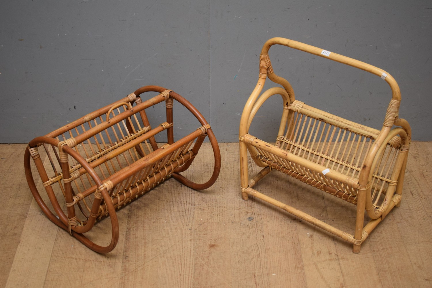 TWO 1950S AUSTRALIAN MADE RETRO CANE MAGAZINE RACKS (55H x 46W x 31D CM) (LEONARD JOEL DELIVERY SIZE: SMALL)