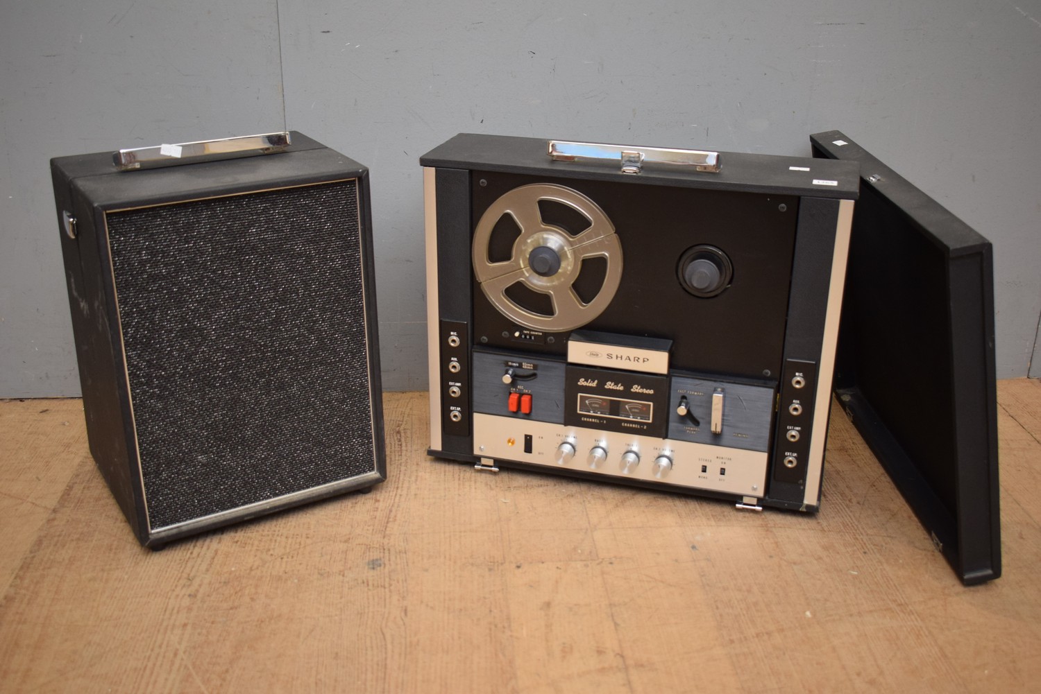 RETRO 1960S SHARP SOLID STATE STEREO REEL TO REEL RECORDER WITH DETACHABLE SPEAKERS (40H x 49W x 15 DCM) (LEONARD JOEL DELIVERY SIZE: LARGE)