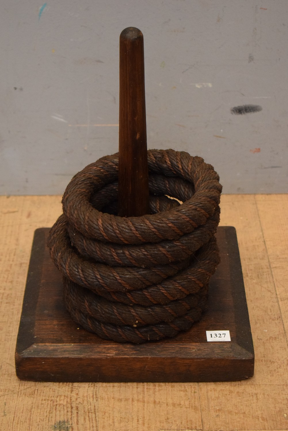1900S WOODEN AND ORIGINAL 6 ROPE RING QUOITS SET (35H CM) (LEONARD JOEL DELIVERY SIZE: SMALL)