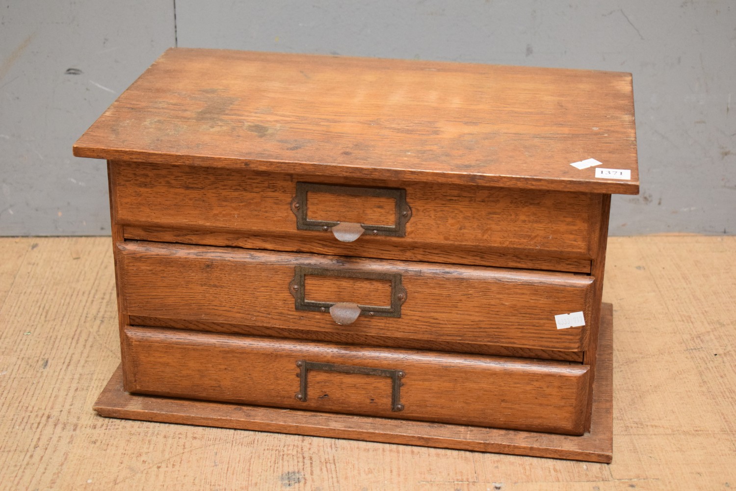 AN AUSTRALIAN MADE OAK 3 DRAWER WATCHMAKERS CABINET (24H x 42W x 28D CM) (LEONARD JOEL DELIVERY SIZE: SMALL)