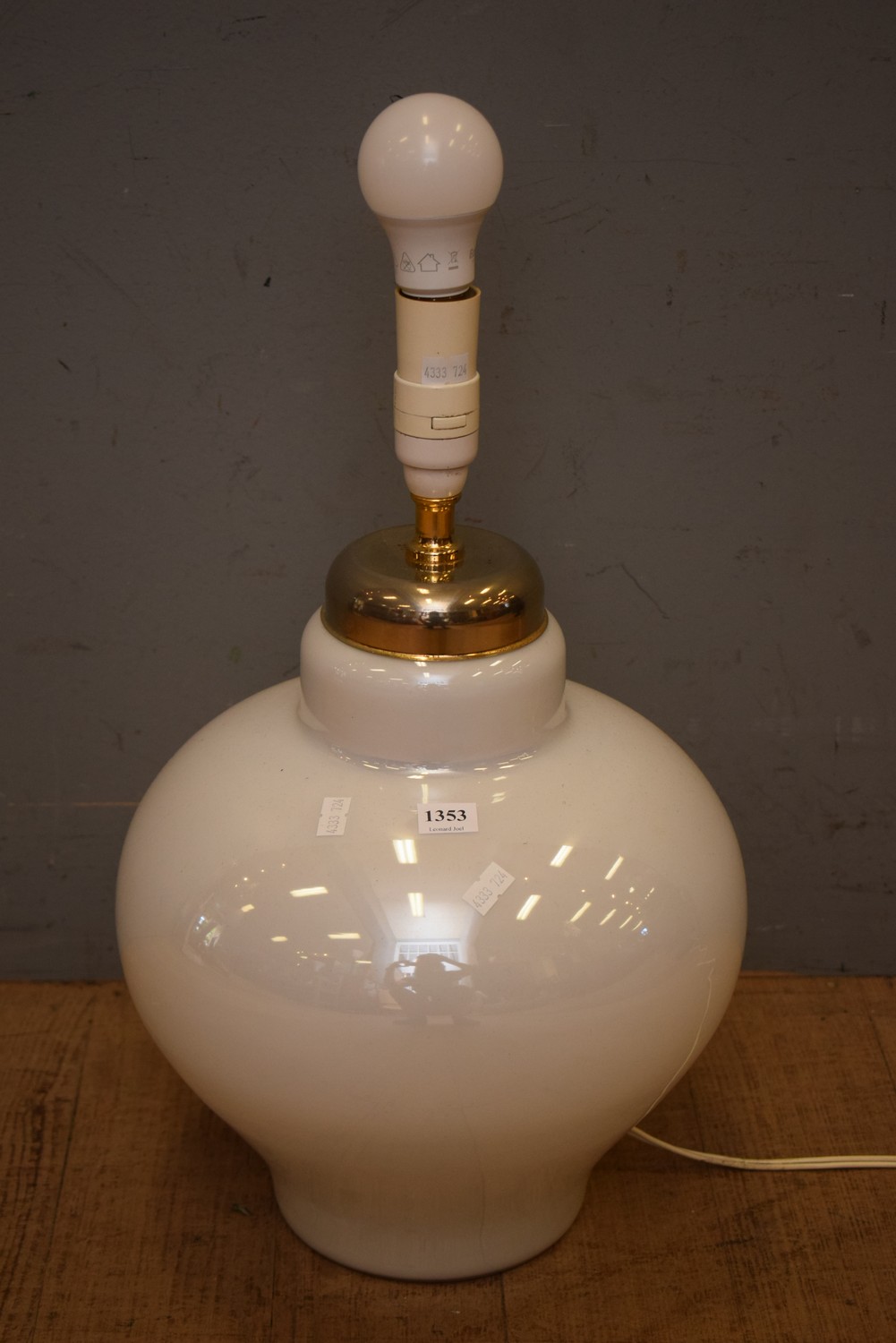 A 1950S SWEEDISH WHITE GLASS BASED TABLE LAMP (55H CM) (LEONARD JOEL DELIVERY SIZE: MEDIUM)