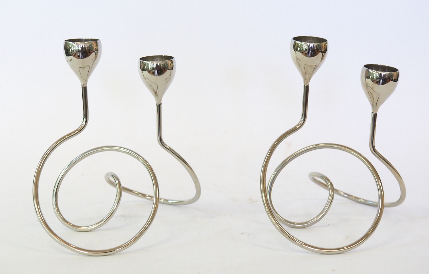 PAIR OF STAINLESS STEEL TWO SCONCE GEORG JENSEN CANDLE STICKS, LEONARD JOEL LOCAL DELIVERY SIZE: SMALL