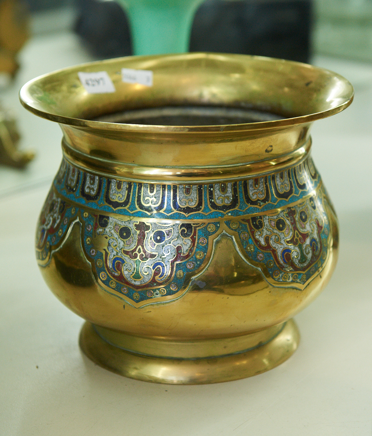 A CHINESE BRASS AND ENAMEL CLOISONNE PLANTER DIA.21CM, LEONARD JOEL LOCAL DELIVERY SIZE: SMALL