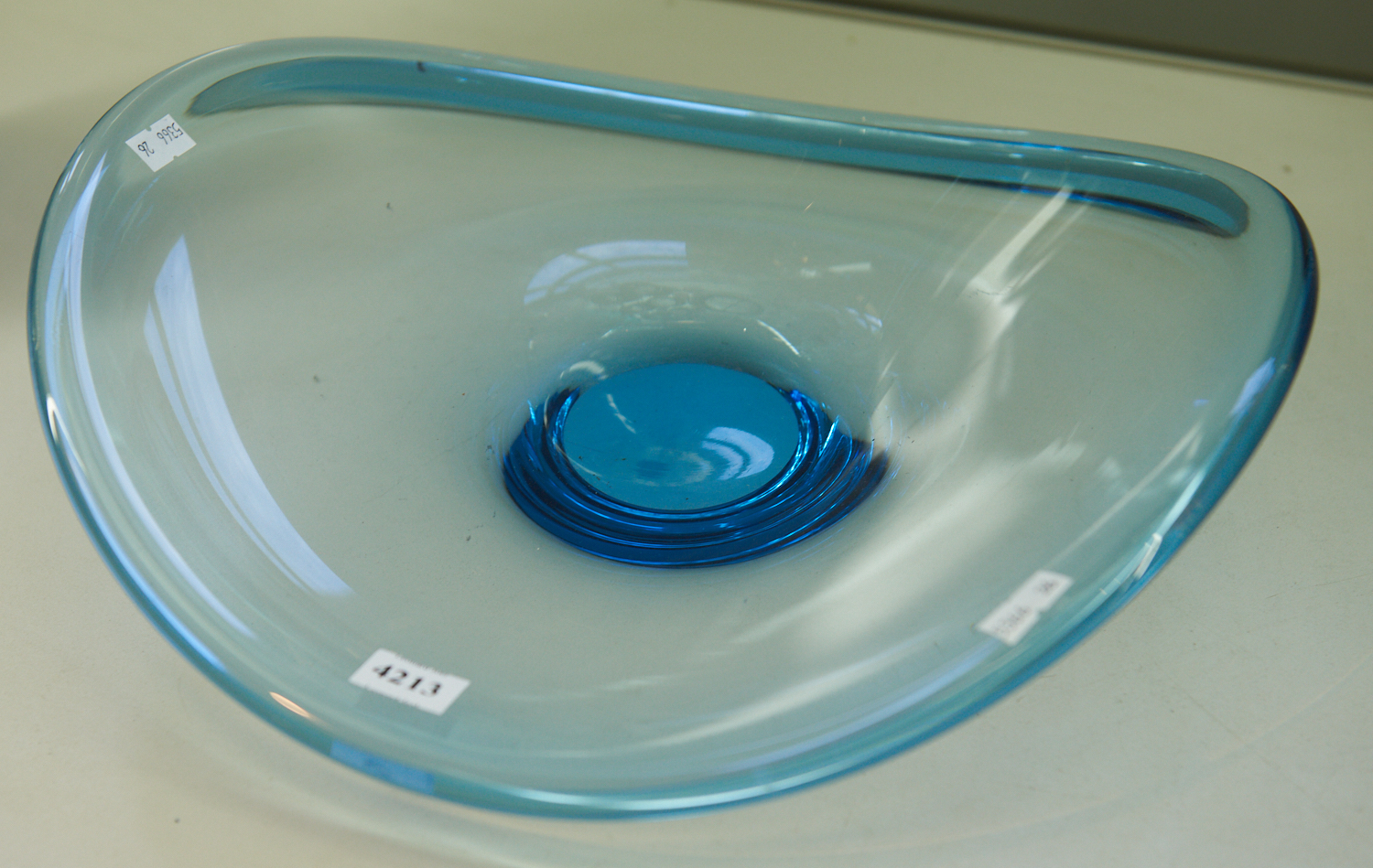 LARGE SWEDISH HOLMGAARD BLUE GLASS BOWL DIA.34CM, LEONARD JOEL LOCAL DELIVERY SIZE: SMALL