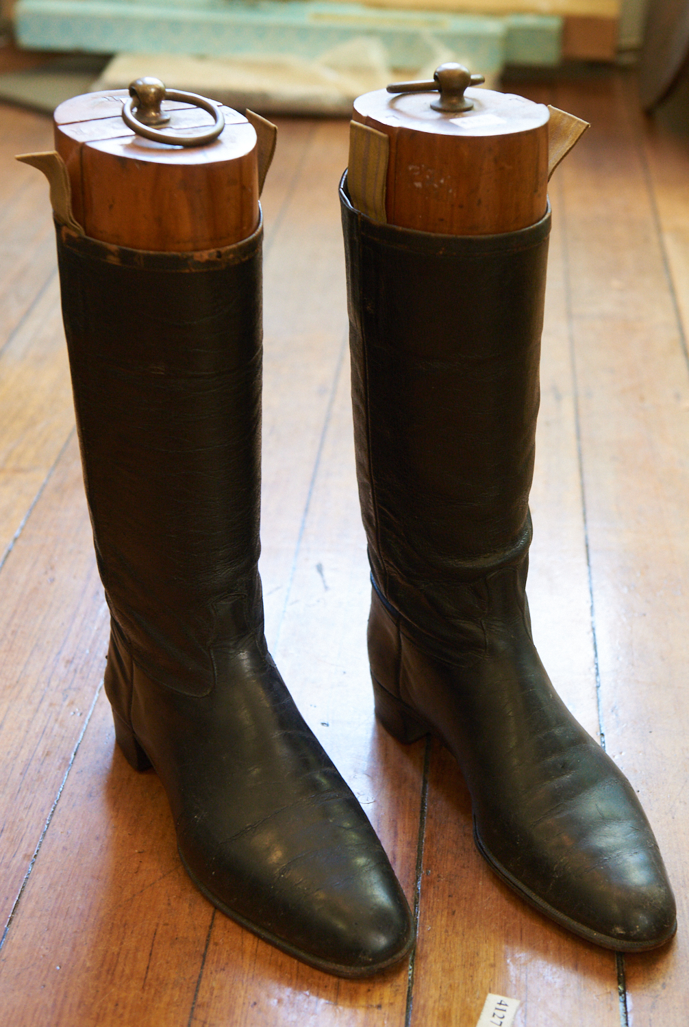 PAIR OF VICTORIAN LEATHER RIDING BOOTS WITH FULL WOODEN LASTS H.41CM, LEONARD JOEL LOCAL DELIVERY SIZE: SMALL