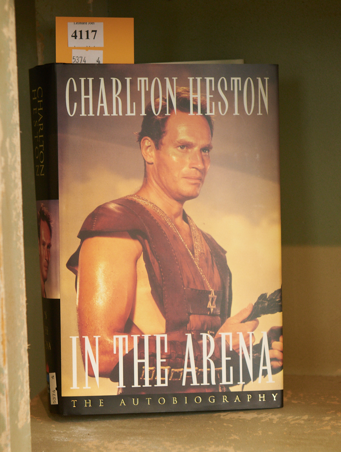 SIGNED BY CHARLTON HESTON, 'IN THE ARENA' THE AUTOBIOGRAPHY BY CHARLTON HESTON, HARPERS COLLINS PUBLISHERS 1995, FIRST EDITION HARDCOVER WITH DUST COVER, LEONARD JOEL LOCAL DELIVERY SIZE: SMALL