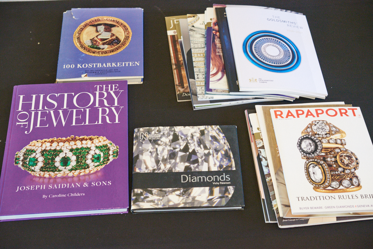 A COLLECTION OF JEWELLERY BOOKS AND MAGAZINES, INCLUDING "THE HISTORY OF JEWELRY" AND "DIAMONDS"