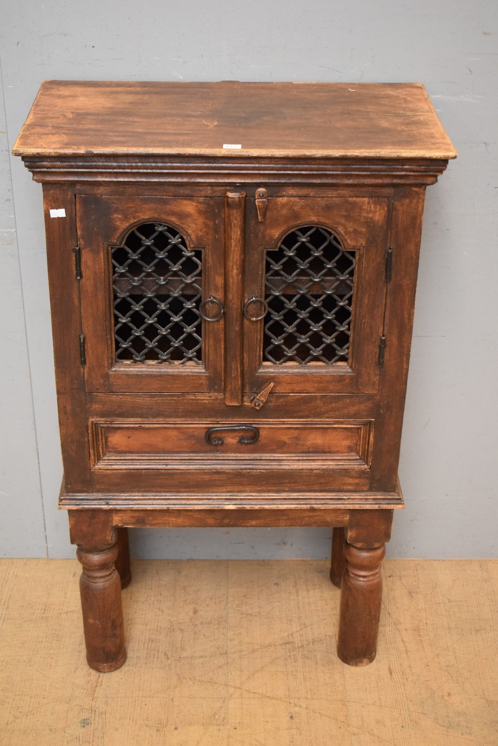 A TWO DOOR TIMBER CABINET (A/F) (101H x 62W x 33D CM) (LEONARD JOEL DELIVERY SIZE: MEDIUM)