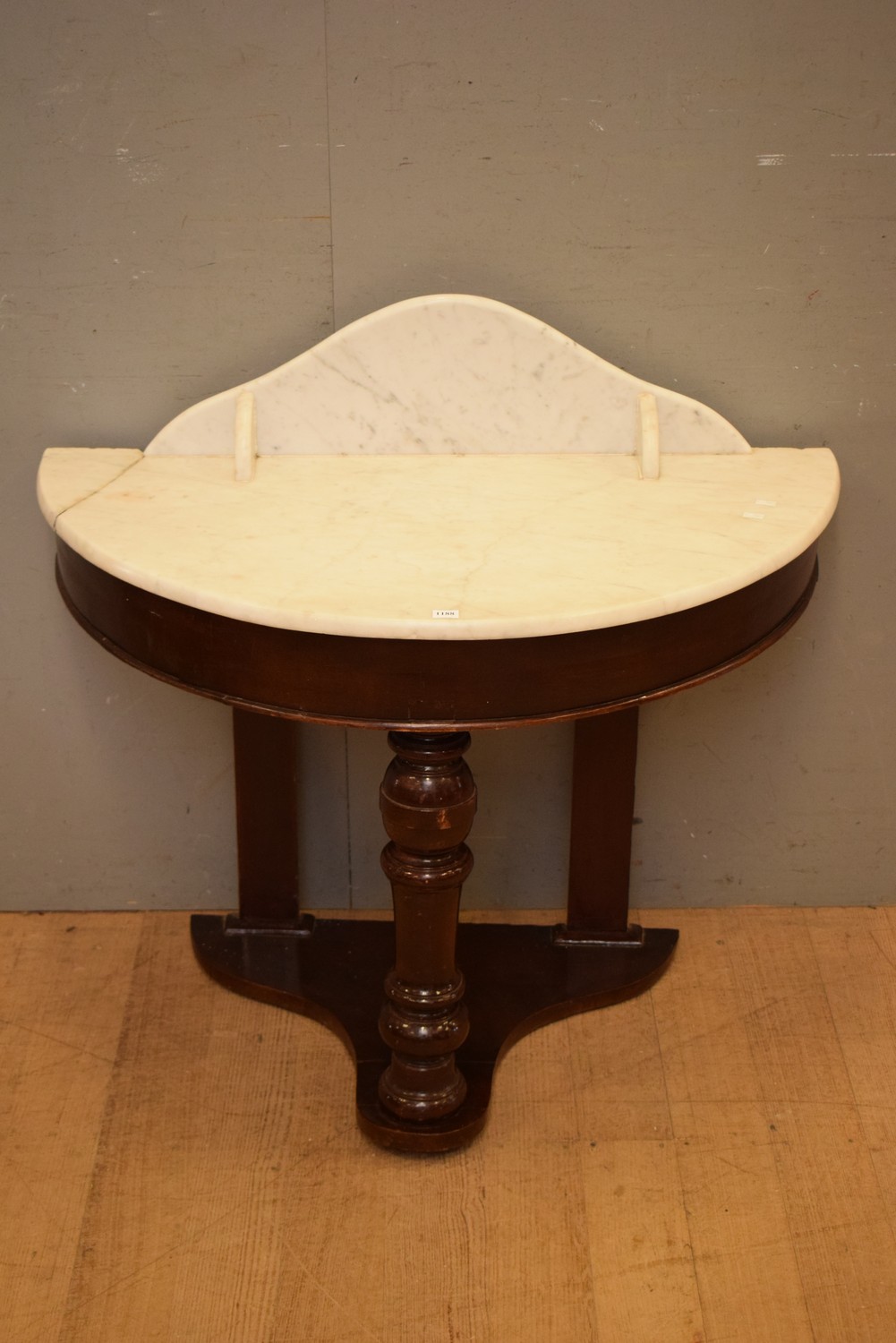 A VICTORIAN MARBLE TOP HALL TABLE (A/F) (84H x 92W x 45D CM) (LEONARD JOEL DELIVERY SIZE: LARGE)