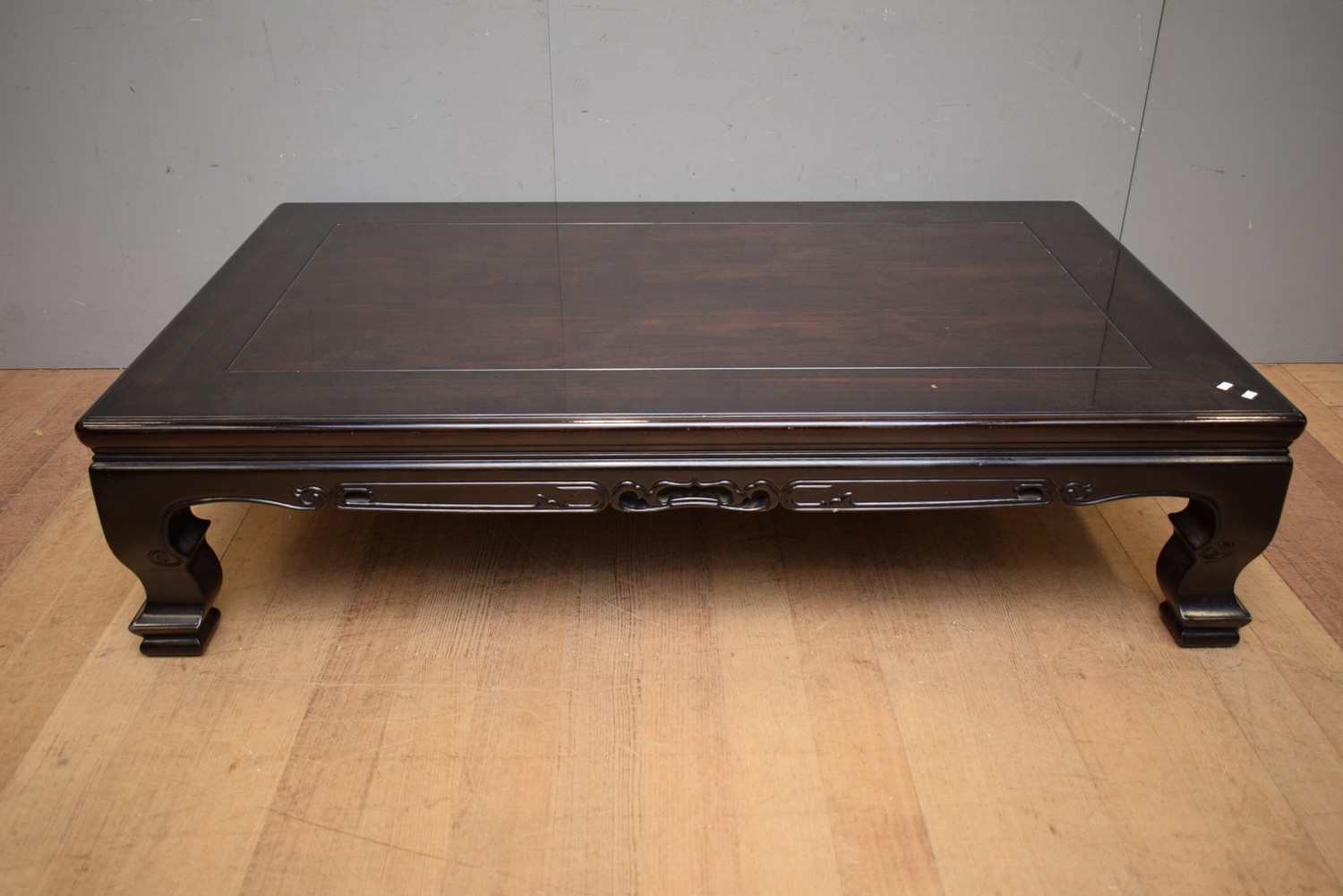 A LARGE ROSEWOOD ORIENTAL COFFEE TABLE (37H x 151W x 90D CM) (LEONARD JOEL DELIVERY SIZE: LARGE)