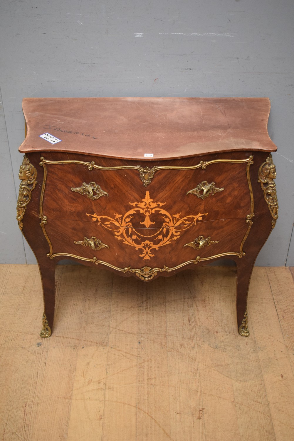 A SMALL FRENCH TWO DRAWER COMMODE (A/F MISSING TOP) (78H x 84W x 42D CM) (LEONARD JOEL DELIVERY SIZE: LARGE)