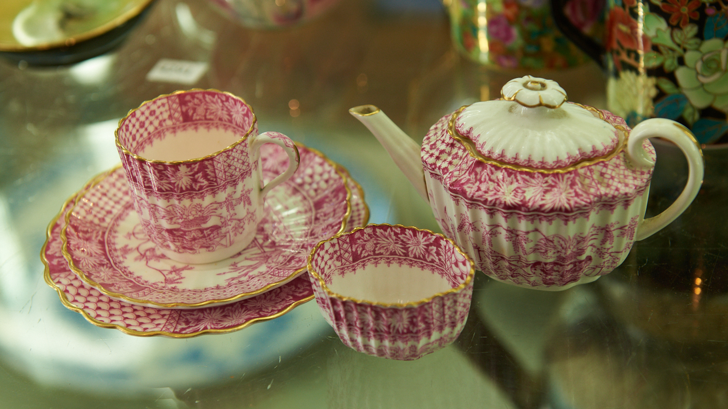 COPELAND SPODE PINK AND WHITE DEMITASSE TEA WARE, LEONARD JOEL LOCAL DELIVERY SIZE: SMALL