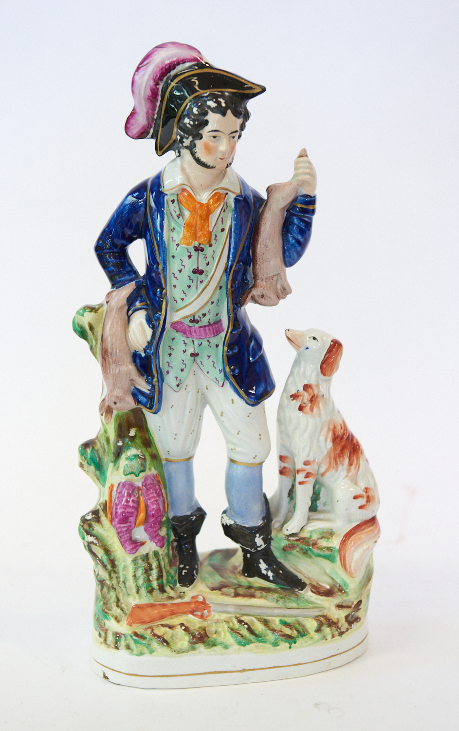 A STAFFORDSHIRE FIGURE WITH GAME H.41CM, LEONARD JOEL LOCAL DELIVERY SIZE: SMALL