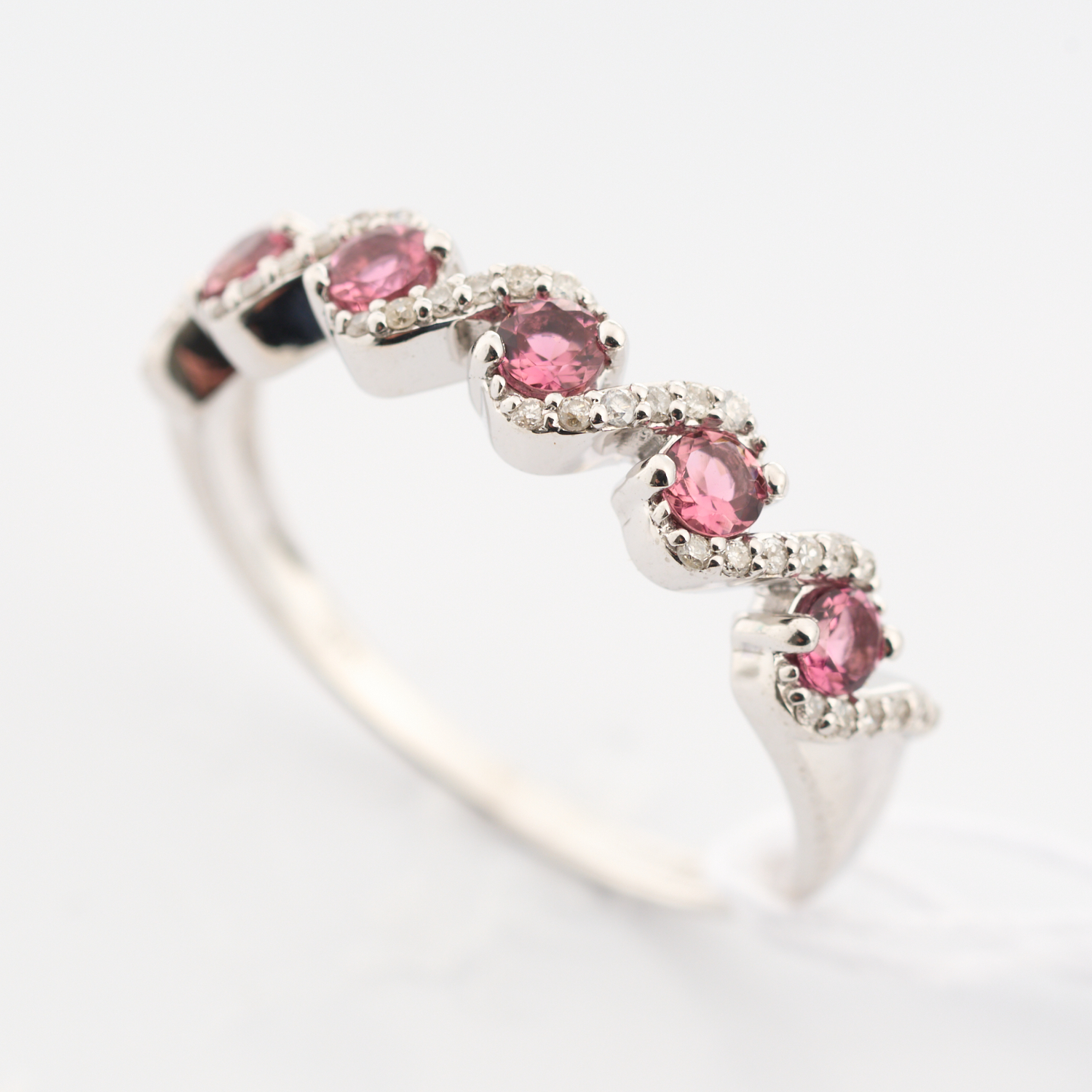 A PINK TOURMALINE AND DIAMOND DRESS RING IN 9CT GOLD, ROUND BRILLIANT CUT TOURMALINE TOTALLING 0.33CTS, WITH FINE DIAMOND DETAILS TOTALLING 0.10CTS, SIZE N/O, 1.70GMS