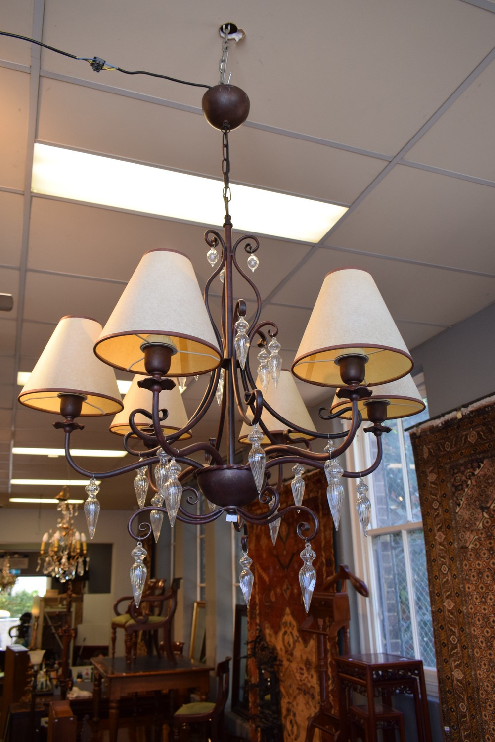 A MODERN ITALIAN SIX GLOBE CHANDELIER WITH GLASS DROPLETS(86H x 88D CM) (LEONARD JOEL DELIVERY SIZE: LARGE)