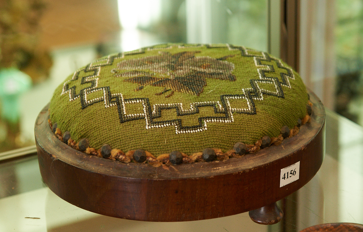 AN EMBROIDERED FOOT STOOL (27 CM W), LEONARD JOEL LOCAL DELIVERY SIZE: SMALL