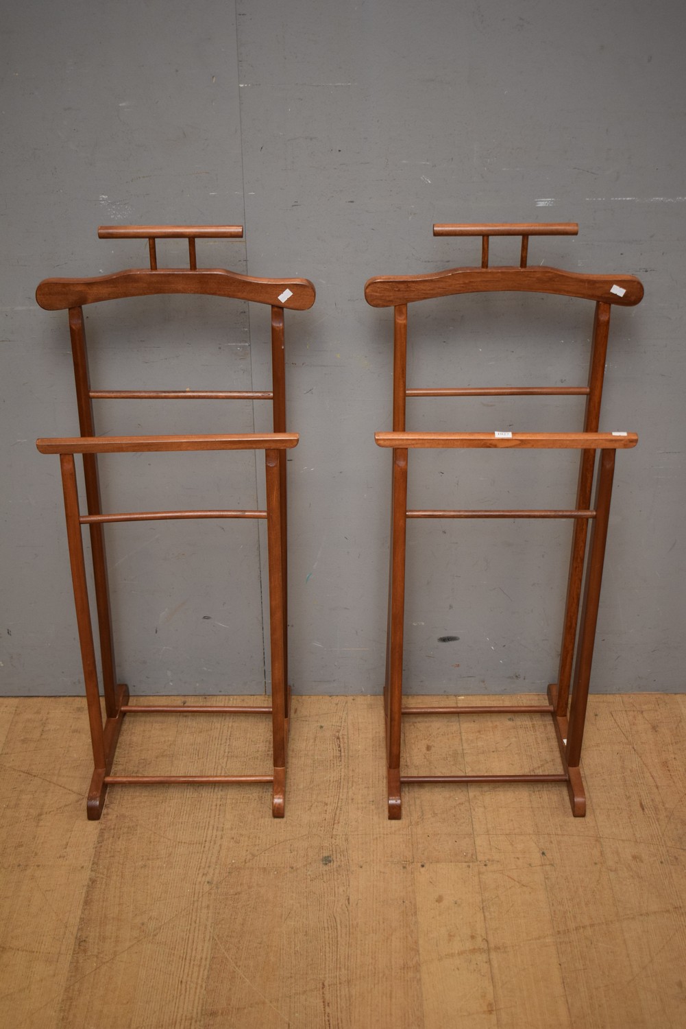 A PAIR OF TEAK MID-CENTURY VALETS (98H x 44W x 35D CM) (LEONARD JOEL DELIVERY SIZE: MEDIUM)
