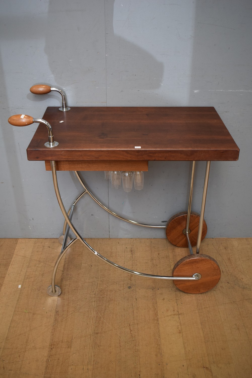 A CUSTOM MADE SOLID JARRAH AND CHROME DRINKS TROLLEY (103H x 100W x 55D CM) (LEONARD JOEL DELIVERY SIZE: LARGE)